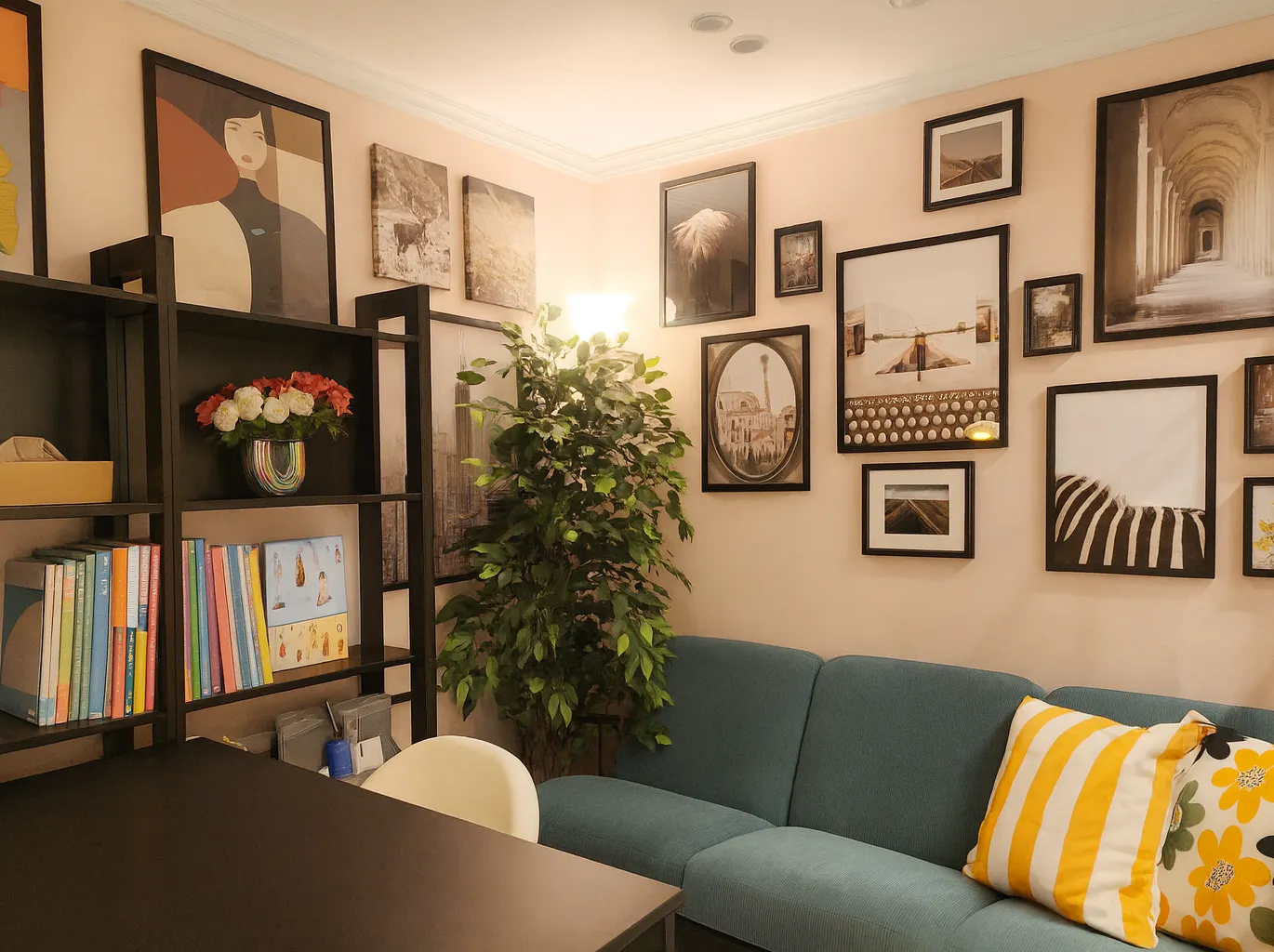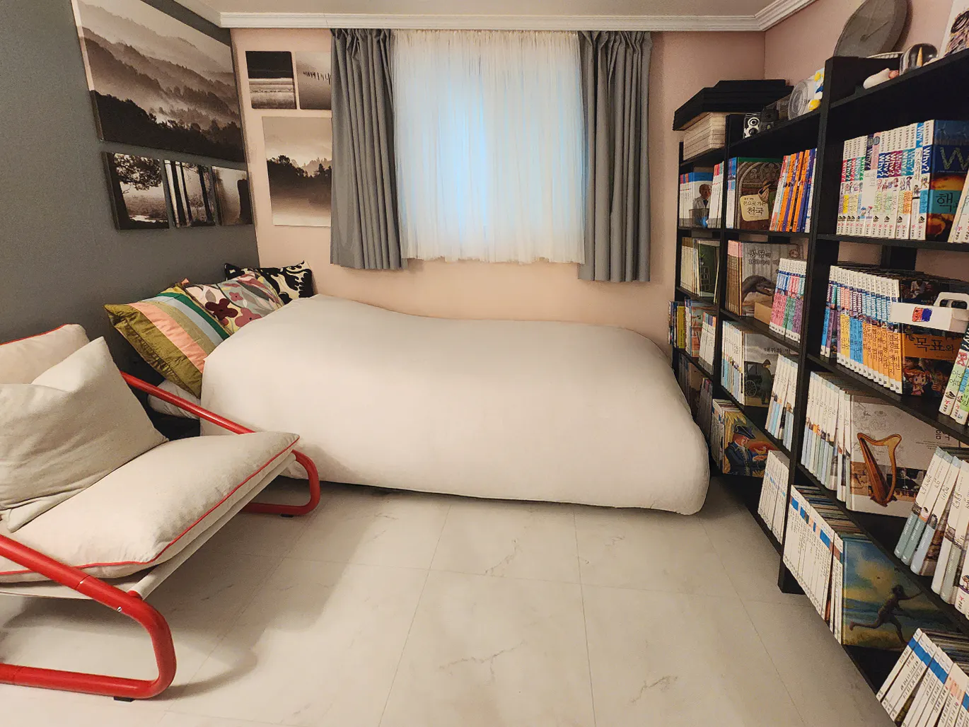 This trendy, thoughtfully remodeled space feels like a stylish book café, full of color and charm. It’s the perfect place when you want quiet time for yourself, when you’re looking for an affordable yet comfortable rest, or when you simply want to disconnect from the outside world as if in a zero-gravity space.