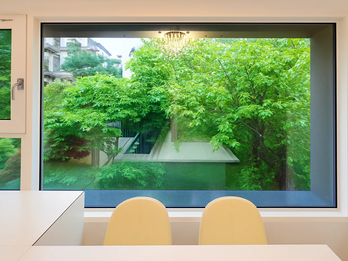 "A serene city retreat with a huge picture window overlooking lush greenery—quiet, private, and just minutes from Gangnam’s best cafés"