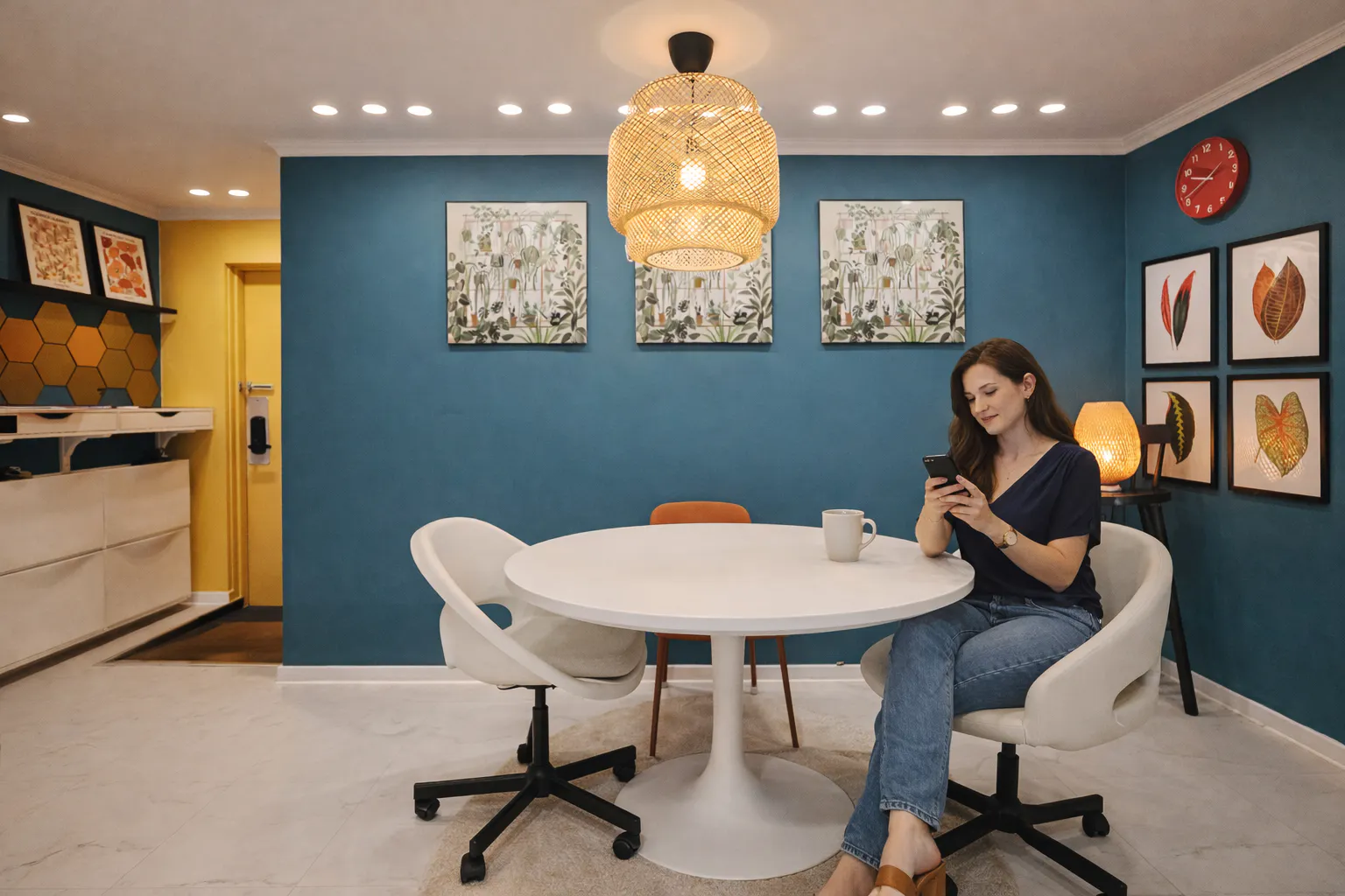 Designed by an interior designer with an architecture background, No.4 is inspired by the Mediterranean climate: the cobalt blue of the sea, the golden warmth of sunlight, and the olive-tree green that brings a soft, natural balance. The result is a unique interior that feels both artistic and deeply relaxing—like a hidden gem in the middle of Seoul.